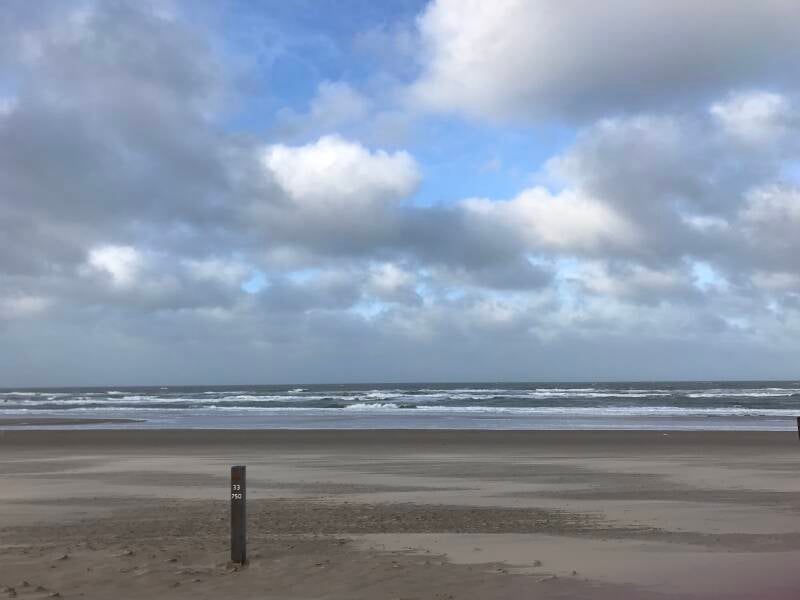 Zondag 29 januari 2023. Het miezert als we vertrekken richting het strand. Ik loop samen met mijn man vanaf de meest zuidelijke afgang in Bergen aan Zee richting Egmond door het PWN duingebied. Wat fietsers passeren ons onderweg. Na zo´n 1,5 km draaien we de heuvel op naar rechts richting het strand. Er staat een pittige wind vanaf zee. Een waterig zonnetje komt af en toe te voorschijn schuin achter ons. Het geraas van de zee is rustgevend en fijn. We passeren mensen met honden die duidelijk zin hebben om te spelen en te rennen. Het is inmiddels droog, aangekomen bij het leegstaande strandpaviljoen hebben we besloten dat we er weer voor gaan, we gaan het koude water in. Alleen nu nog op zoek naar een plek waar we beschut kunnen staan voor het omkleden. Dit is even zoeken, maar we hebben een plek gevonden en kleden ons om. We hebben surfschoenen aan om de voeten in ieder geval een beetje warm te houden. We lopen rustig aan de zee in. Het moeilijkste moment is wanneer je echt helemaal erin bent, met het gehele lichaam onder water. Een flinke golf klotst tegen mijn achterhoofd en ik voel een scherpe ijzige kou in mijn nek. Ik zie een hond die in het begin van het water staat en lijkt te twijfelen of hij ook dieper het water in zal gaan. Toch niet. De zee is beweeglijk, matige golven komen af en aan. We besluiten om eruit te gaan. Mijn man gaat nog even koppie onder en we lopen rustig richting het paviljoen om ons af te drogen. De afgescheurde en verweerde vlag klappert driftig tegen de mast die door de wind flink wordt beziggehouden. De handdoeken van de Decathlon lijken geheel niet af te drogen, maar het voordeel is; ze passen heel makkelijk in een kleine hardlooprugzak. Er komt een groepje jonge hardlopers naar beneden en kijken naar ons, terwijl wij ons in bochten wringen om ons natte lichaam zo zandvrij en snel mogelijk in droge kleding te wurmen. Dit blijft toch altijd een gedoetje vooral het uittrekken van de surfschoenen. Het geluid van de vlaggenmast blijft ons vergezellen in dit hele proces. Met een voldaan gevoel hebben we ons zondagse ochtendritueel weer volbracht en met een tevreden gevoel gaan wij het strand af op weg naar huis.